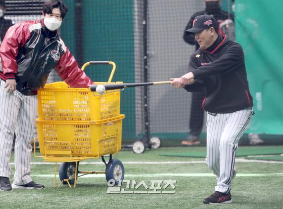 [포토]유지현 감독,직접 펑고