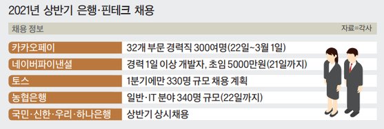 연초부터 핀테크(금융+기술)사들의 '디지털 인재' 모시기가 시작됐다. 반면 시중은행은 작년 상반기와 마찬가지로 수시채용으로 필요한 인원을 채울 뿐이다. 은행권 수장들이 너도나도 '디지털 금융'을 강조하며 관련 부서를 키우고 있지만, 인재 채용에는 소극적이다.