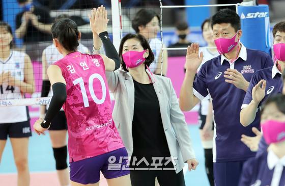 24일 기업은행전을 앞두고 만난 박미희 감독은 "선수단이 전반적으로 웃는 모습이 많아졌다. 이야기하는 목소리도 조금 커졌다"며 한층 나아진 팀 분위기를 전했다. 반등한 브루나에 대해서는 "세터 김다솔과 호흡이 잘 맞는 것 같다. (부진했던 초반에는) 스트레스가 있었던 것 같다. 남은 시즌 꾸준히 잘 해줘야 하는 선수이기 때문에 오늘 경기(기업은행전)이 더 중요할 것 같다. 평정심을 유지할 수 있도록 유도하겠다"고 전했다.