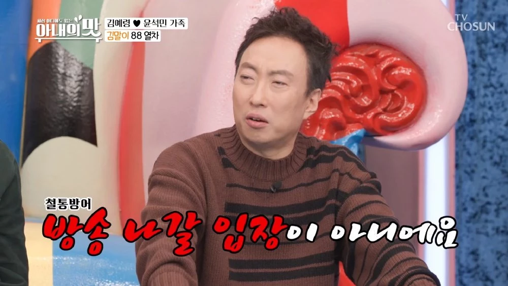 박명수는 "저희 아내는 지금 어디를 나갈 입장이 아니다. 올해 넘겨야 한다"라고 칼 같이 답했다. 장영란이 "왜 올해 넘겨야 해?"라며 궁금해하자, 박명수는 "이제 그런 거 매스컴은 전혀 안 할 거다"라며 선을 그었다.