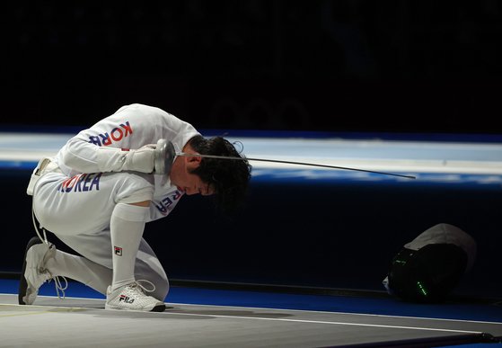 박상영(26·울산광역시청), 권영준(34·익산시청), 마세건(27·부산시청), 송재호(31·화성시청)가 호흡을 맞춘 한국은 30일 일본 지바 마쿠하리 메세B홀에서 열린 도쿄올림픽 펜싱 남자 에페 단체 4강 일본전을 45-38로 패했다. 8강에서 강호 스위스를 격파하고 준결승에 올랐지만 '숙적' 일본에 덜미가 잡혔다.