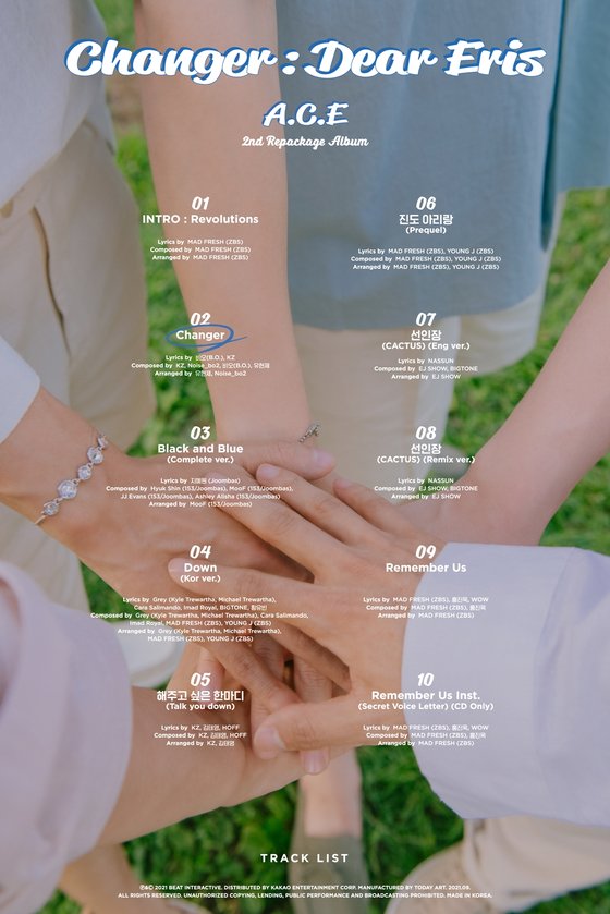 31일 에이스는 공식 SNS 계정을 통해 두 번째 리패키지 앨범 'Changer : Dear Eris (체인저 : 디어 에리스)'의 트랙리스트와 하이라이트 메들리를 공개했다. 트랙리스트에 따르면 이번 앨범에는 타이틀곡 'Changer (체인저)'를 비롯해 총 열 곡이 담겨 있다.