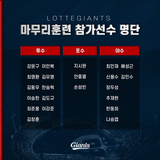 선수단은 2일부터 합류하는 교육리그 경기 출전조와, 리커버리조 두 조로 나뉘어 운영된다.
