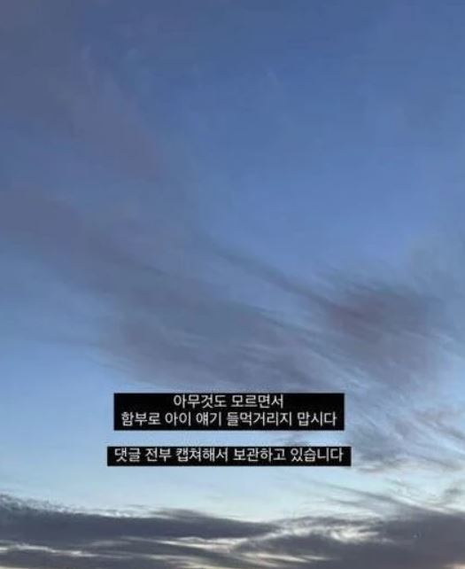 야옹이 작가는 지난 4일 자신의 인스타그램 스토리에 “아무것도 모르면서 함부로 아이 얘기 들먹거리지 맙시다”라는 메시지를 올려놨다. 이어 그는 "댓글 전부 캡처해서 보관하고 있다”며 법적 대응도 언급했다.
