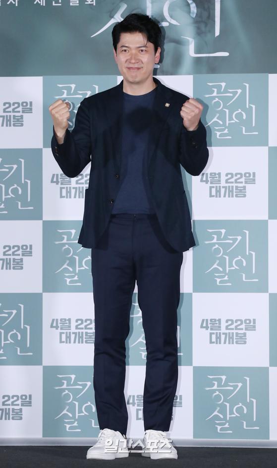 배우 김상경이 8일 오후 서울 용산구 CGV 용산아이파크몰에서 열린 영화 '공기살인' 시사회 포토타임에서 포즈를 취하고 있다.