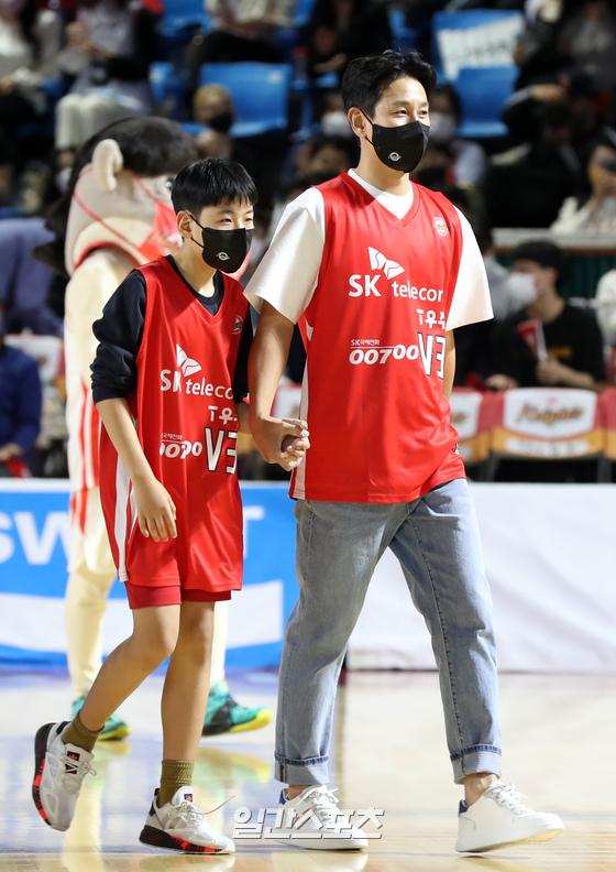 [포토]배우 이선균, 아들과 농구장 나들이