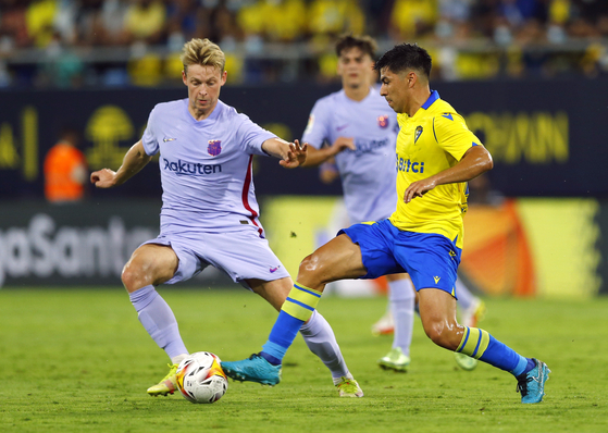 바르셀로나의 프랭키 더 용(왼쪽). 사진=로이터 연합뉴스 맨체스터 유나이티드(맨유) 이적설이 돌고 있는 프랭키 더 용(바르셀로나)이 이적을 거부할 것으로 전망된다. 맨유와 바르셀로나 구단 사이에서는 더 용이 맨유로 이적하는 것에 합의가 끝났으나 선수가 이를 받아들이지 않고 있다.