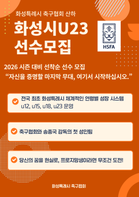 송종국에게 지휘봉 맡긴 화성시축구협회, U—23 선수 모집…“선택받지 못한 이들 도약 돕겠다”