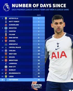 통계 매체도 놀랐다 “토트넘, 86일 동안 무승” EPL 20개 구단 중 최다