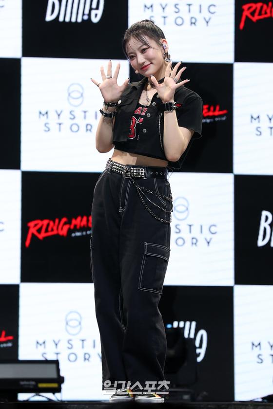 그룹 빌리(Billlie)의 시윤이 31일 오후 서울 광진구 예스24라이브홀에서 진행된 빌리의 세 번째 미니앨범 'the Billage of perception: chapter two(더 빌리지 오브 퍼셉션: 챕터 투)' 발매 기념 쇼케이스에 참석해 포토타임을 갖고 있다.