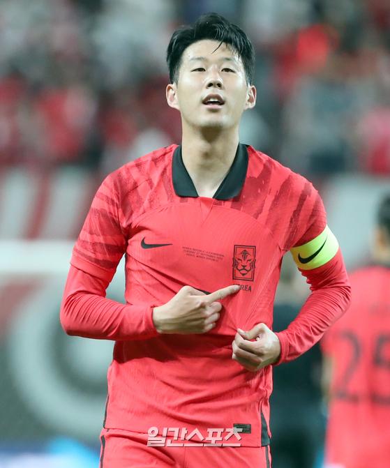 파울루 벤투 감독이 이끄는 한국 축구대표팀이 27일 오후 서울월드컵경기장에서 카메룬과 평가전을 펼쳤다. 손흥민이 전반 첫골을 성공시키고 기뻐 하고있다. 서울월드컵경기장=정시종 기자 capa@edaily.co.kr /2022.09.27. 한국 축구 대표팀이 2022 국제축구연맹(FIFA) 마지막 모의고사에서 승전고를 울렸다.