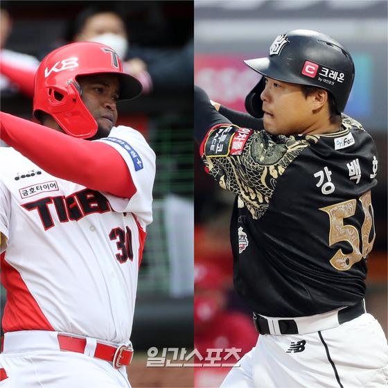 와일드카드 결정전 키를 쥐고 있는 소크라테스(왼쪽)과 강백호. IS포토 핵심 타자의 반등. 와일드카드 결정전에 나서는 KT 위즈와 KIA 타이거즈의 공통 화두다.