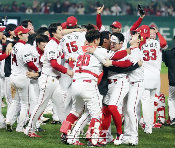 [포토]우승의 순간, 다함께 얼싸안은 SSG랜더스 선수들