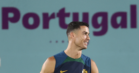 2022 카타르 월드컵 한국의 조별리그 3차전 상대인 포르투갈 축구 대표팀의 크리스티아누 호날두가 26일 오후(한국시간) 카타르 도하 외곽의 알샤하니야 SC 훈련장에서 훈련하고 있다. 연합뉴스 크리스티아누 호날두(37)가 '월드컵 5개 대회 연속 득점을 기념해 포르투갈 축구대표팀 동료들에게 고급 레스토랑에서 저녁 식사를 제공했다.