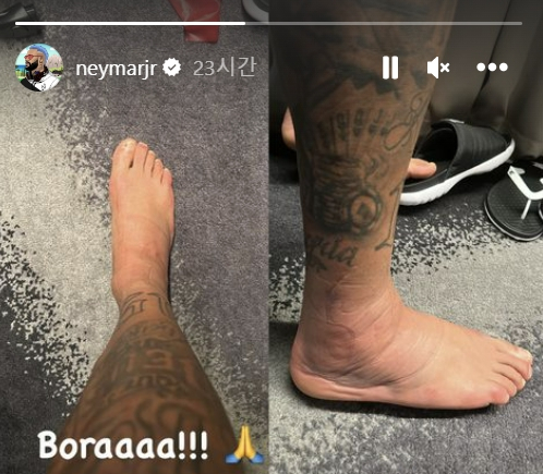 네이마르는 인스타그램에 부상 부위를 올리면서도 가자(Boraaa!!)라고 응원 구호를 붙여 자신과 팀 동료를 응원했다.