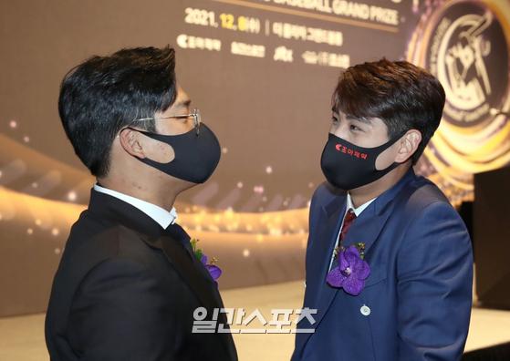 절친한 사이면서 경쟁자인 이정후(오른쪽)과 강백호. 2023년 두 선수의 행보에 관심이 모인다. IS포토 2022 준플레이오프(PO)는 양 팀 간판타자 이정후(24·키움 히어로즈)와 박병호(36·KT 위즈)의 대결 구도에 관심이 쏠렸다. 4년(2018~2021) 동안 키움에서 한솥밥을 먹은 절친한 선·후배가 다른 유니폼을 입고 만났다.
