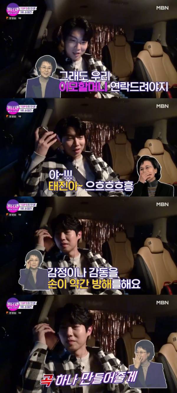 앞서 1위 발표가 끝난 후 손태진은 집으로 돌아가는 길에 “우리 이모할머니한테 연락드려야지”라며 차 안에서 심수봉에 전화를 걸었다.