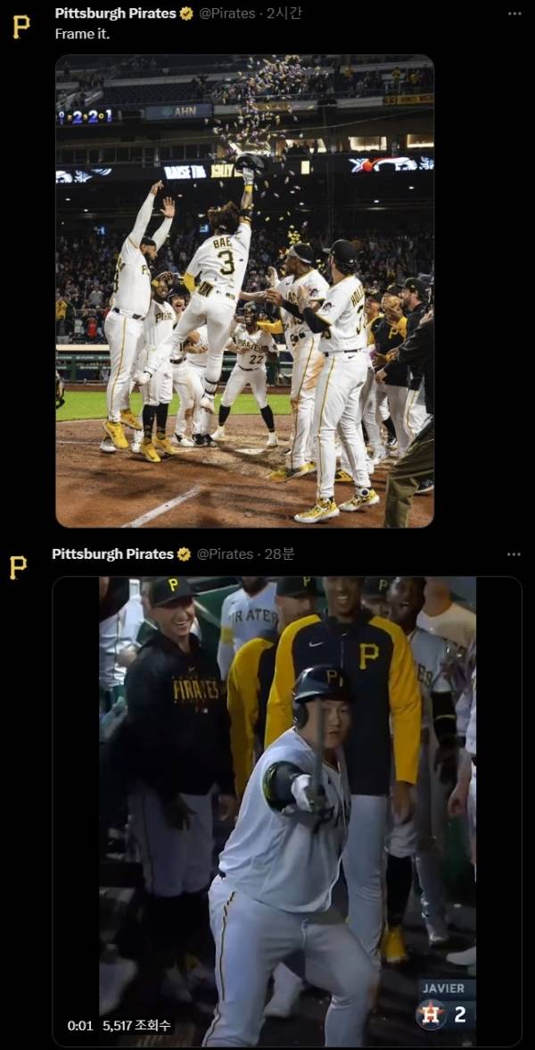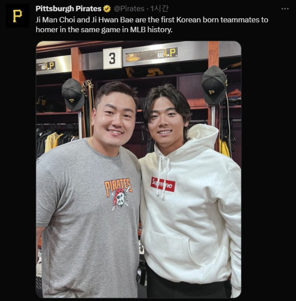 한국인 메이저리거 새 역사를 쓴 최지만-배지환에게 피츠버그 파이리츠 구단도 축하 메시지를 남겼다.