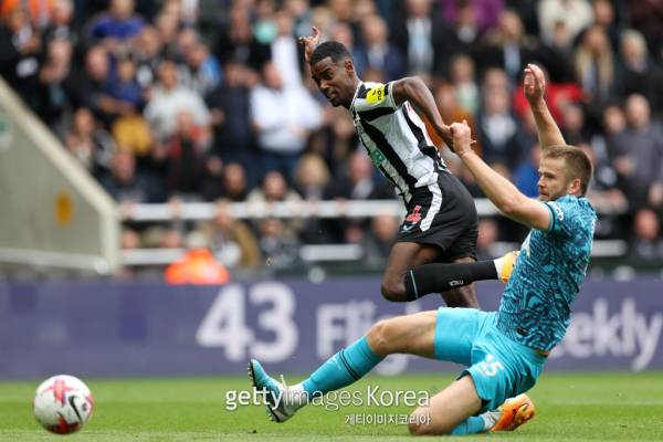 토트넘 손흥민과 해리 케인이 23일 뉴캐슬 유나이티드 원정에서 팀이 4번째 골을 실점하자 아쉬워하고 있다. 사진=게티이미지뉴캐슬 알렉산데르 이사크가 23일 토트넘과의 홈경기에서 에릭 다이어의 태클을 피해 슈팅을 시도하고 있다. 사진=게티이미지 그야말로 충격적인 전반전이었다.