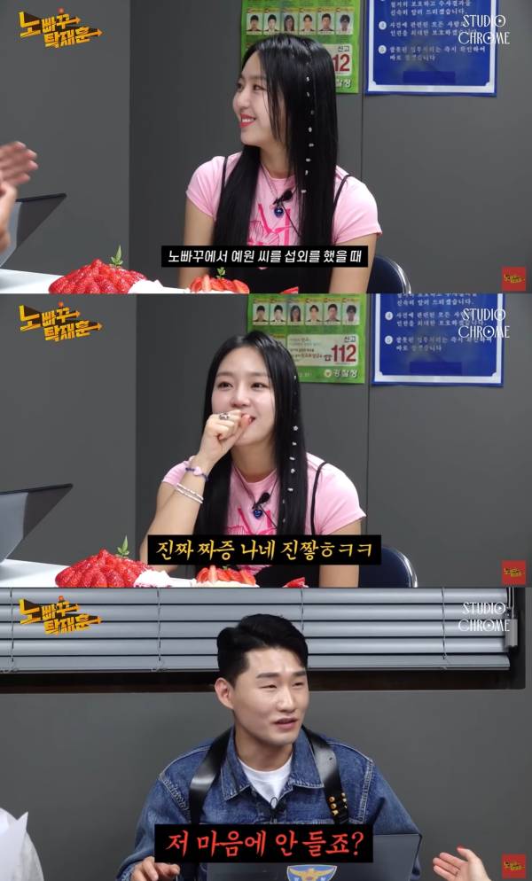 MC 신규진은 “예원 씨를 ‘노빠꾸’에서 섭외했을 때 어떤 장면이 필요할 것 같냐”고 물었다. 이에 예원은 과거 크게 화제가 된 논란을 눈치챈 듯 “진짜 짜증나네”라고 말했다.