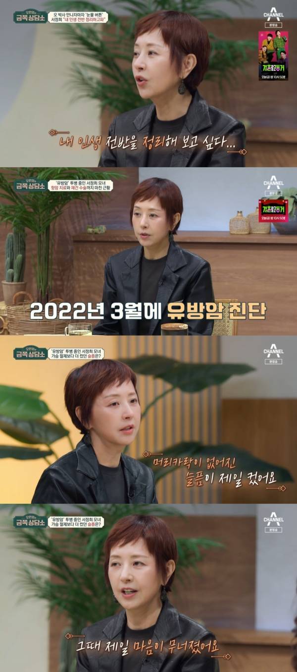 사진=채널A ‘오은영의 금쪽 상담소’ 방송 캡처 배우 서정희가 유방암 수술 후 근황을 전했다.