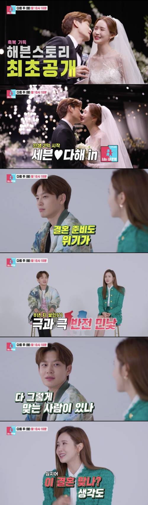 이다해는 “한 가지만 고치면 좋을 것 같은데 사람은 변하지 않나보다”고 했고, 세븐은 “쉽지 않다”며 팽팽하게 대립했다. 결국 이다해는 “이 결혼 맞나는 생각까지도 들었다”고 말하며 두 사람 사이에 문제는 무엇인지 궁금증을 자아냈다.