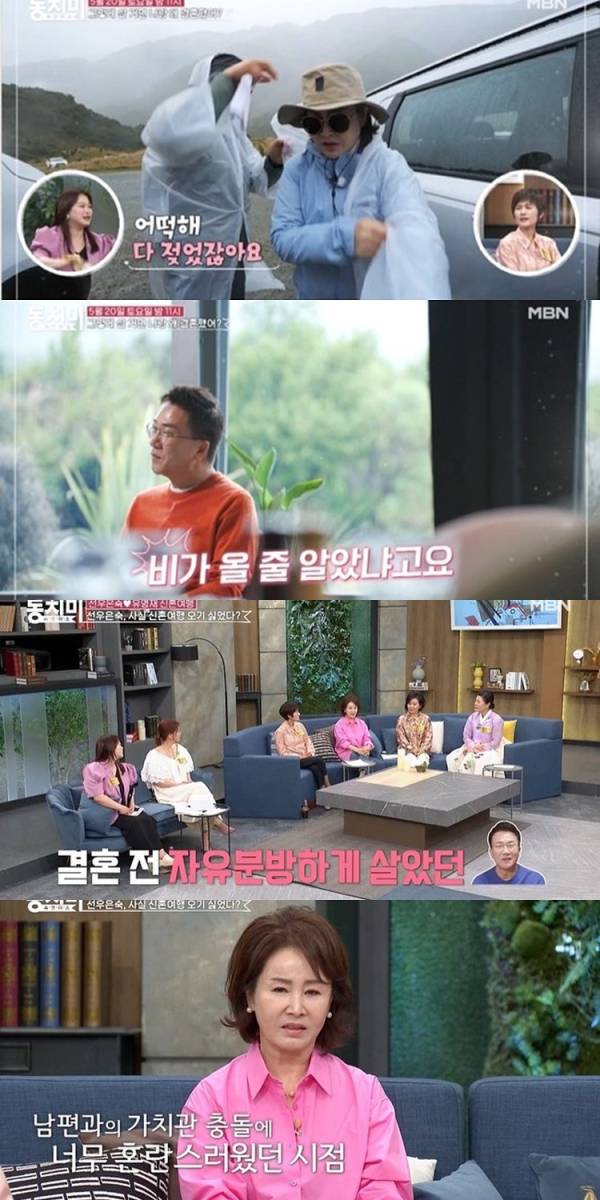 뉴질랜드 신혼여행도 방송 스케줄 때문에 어쩔 수 없이 가게 됐다고 밝힌 선우은숙은 “이 사람과 나의 다른 가치관이 혼란스럽다. ‘이럴 거면 내가 왜 결혼을 했지?’라는 생각이 들더라”라고 말해 놀라움을 안겼다. 그러자 최은경이 “오롯이 신혼여행을 즐기고 싶기도 한데, 촬영 팀에게 피해를 줄까 스스로에게 스트레스를 받은 것도 있는 것 같다”며 선우은숙을 위로했다.