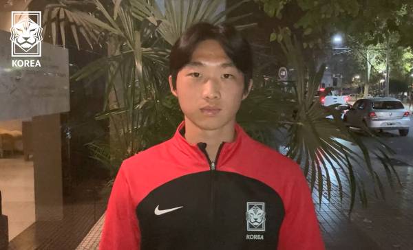 26일 열린 2023 FIFA U-20 월드컵 F조 2차전 온두라스와의 경기 뒤 인터뷰에 응하고 있는 김용학의 모습. 대한축구협회 제공