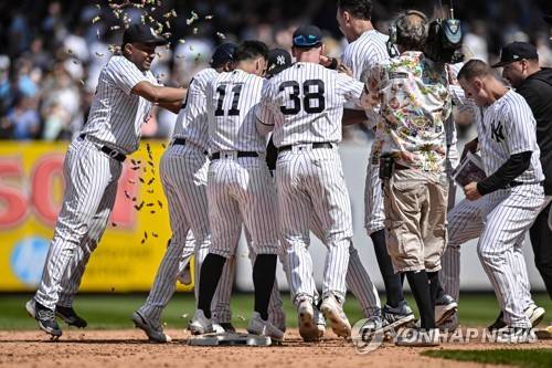 28일 열린 뉴욕 양키스와 샌디에이고 파드리스의 경기. 김하성이 송구하고 있다. 로이터=연합뉴스28일 열린 뉴욕 양키스와 샌디에이고 파드리스의 경기. 양키스 선수단이 카이너 팔레파의 끝내기 안타로 승리한 뒤 환호하고 있다. USA 투데이=연합뉴스 샌디에이고 파드리스 김하성이 부상으로 휴식 후 한 경기 만에 복귀했다. 그는 세 번째 타석에서 1타점으로 리드를 안겼으나, 팀은 연장 접전 끝에 졌다.
