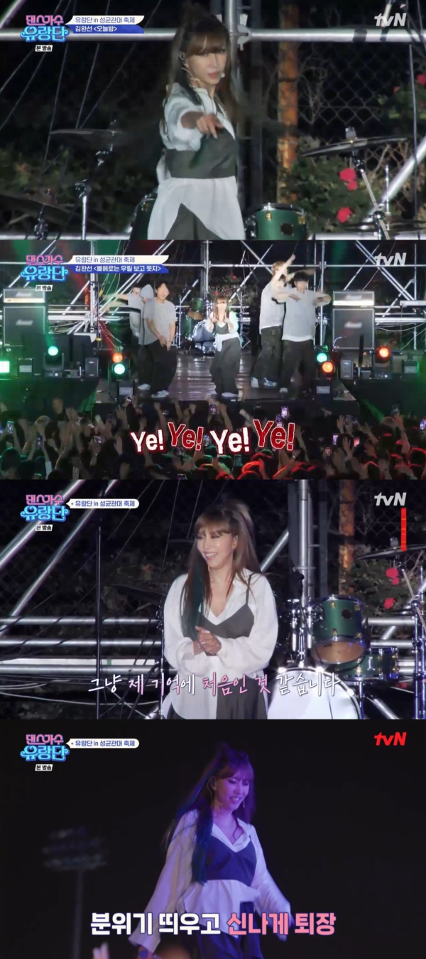 22일 방송된 tvN ‘댄스가수 유랑단’에서는 김완선, 엄정화, 이효리, 보아, 화사가 대학교 축제 무대에 오르는 모습이 그려졌다.