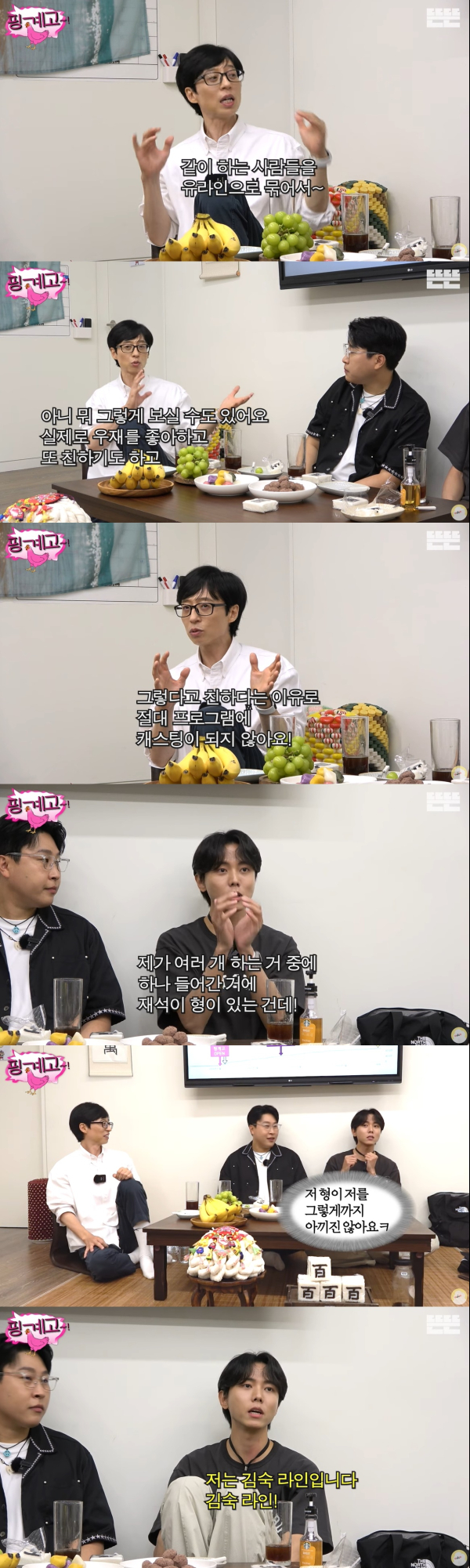 유재석은 “녹화를 같이 몇 번 하면 ‘유라인’으로 보시더라. 실제로 우재를 좋아하고 친하지만, 친하다고 해서 절대 방송에 캐스팅 되지 않는다”고 부인했다.