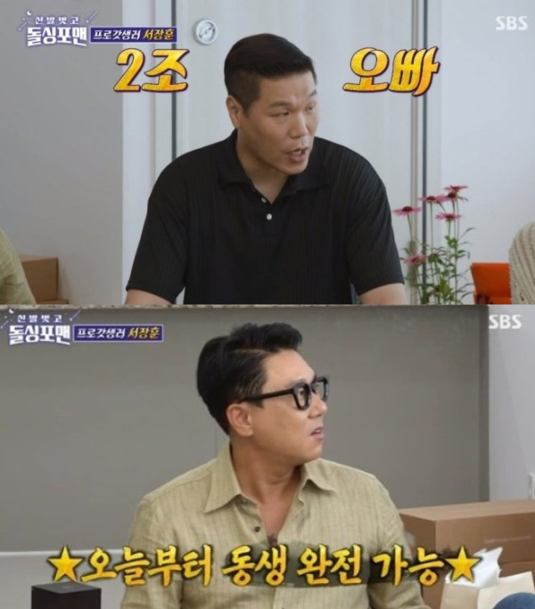이상민은 “별명이 ‘2조 오빠’라는 게 얼마나 행복하냐. 나는 (별명이) 빚돌이, 상그지, 각설이, 빈대다”라며 서장훈을 부러워했다. 또 서장훈은 “상민이 형에게 200만 원 용돈을 줄 수 있냐”는 김준호의 질문에 “상민이 형한테 뭔 일 있으면 그 이상으로 얼마든지 드릴 수 있다. 형이니까”라고 답했다. 그러면서도 “근데 (이상민이) 형이니까 그럴 일은 없을 것”이라고 덧붙였다.