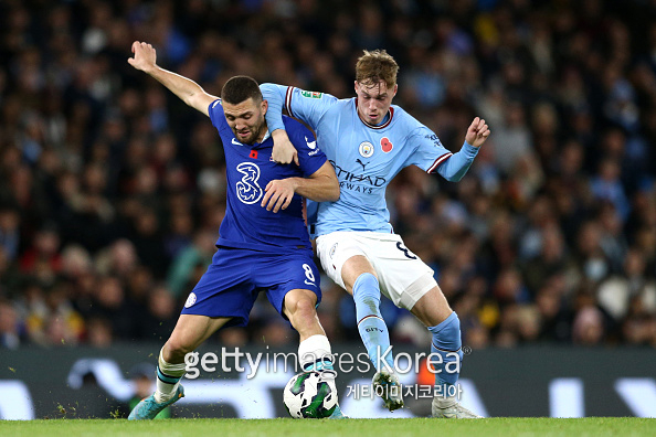 한편 맨시티는 30일 오후 8시 같은 장소에서 열리는 아틀레티코 마드리드와의 ‘쿠팡플레이 시리즈’ 2차전에서 격돌한다. MANCHESTER, ENGLAND - NOVEMBER 09: Mateo Kovacic of Chelsea battles for possession with Cole Palmer of Manchester City during the Carabao Cup Third Round match between Manchester City and Chelsea at Etihad Stadium on November 09, 2022 in Manchester, England. (Photo by Jan Kruger/Getty Images) - 내일 경기 소감은 좋다. 좋은 상대와 만났다. 좋은 경기 기대한다. 지금까지 해오던 대로 이기려고 하겠다.