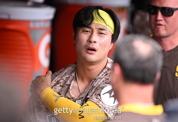 MLB닷컴은 "김하성이 희생 플라이때 다쳤다"고 소식을 전했다. 김하성은 곧바로 매튜 배튼으로 교체됐다.