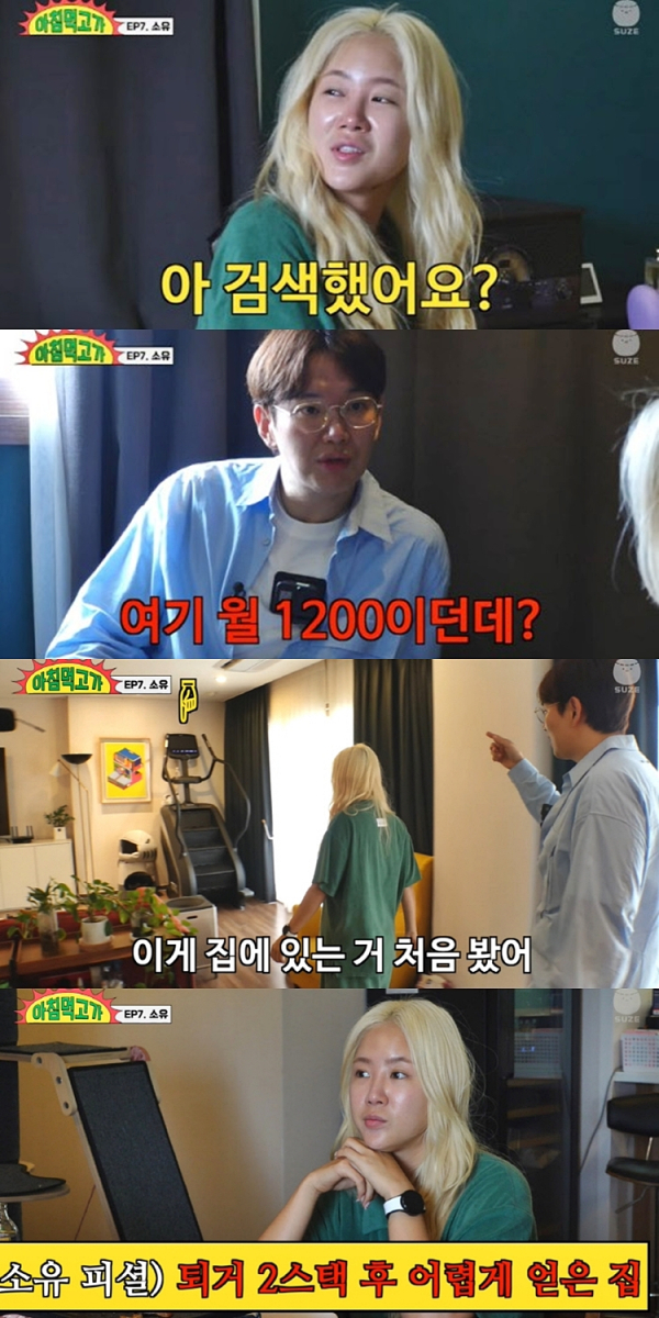 이날 MC 장성규가 서울 용산구 한남동에 있는 고급 아파트에 거주하는 소유를 깨워 아침밥을 먹이는 모습이 담겼다. 장성규는 소유의 집 안에 들어서자마자 “이야 엄청 크다 무슨 펜션 같아”라며 감탄했다.