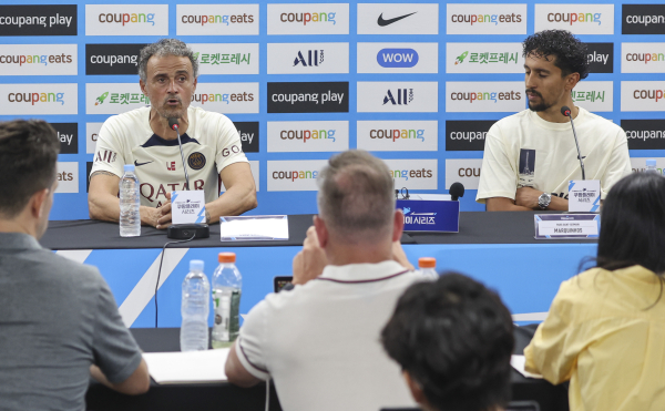 함께 기자회견에 참석한 센터백 마르퀴뇨스도 “내일 경기는 높은 수준의 팀을 상대하기에 잘 준비해야 한다. 각 주, 매 경기 향상하는 것을 목표로 한다. 계속 좋고 강한 팀이 되도록 노력해야 한다”고 힘줘 말했다. 기자회견하는 PSG 엔리케 감독과 마르퀴뇨스선수 (부산=연합뉴스) 강덕철 기자 = 전북 현대와 친선전을 하루 앞둔 2일 PSG 엔리케 감독과 마르퀴뇨스선수가 부산 아시아드주경기장에서 열린 공식 기자회견에서 질문에 답하고 있다. 2023.8.2 kangdcc@yna.co.kr/2023-08-02 20:12:01/ <저작권자 ⓒ 1980-2023 ㈜연합뉴스. 무단 전재 재배포 금지.> ▲다음은 엔리케 감독, 마르퀴뇨스와 일문일답.