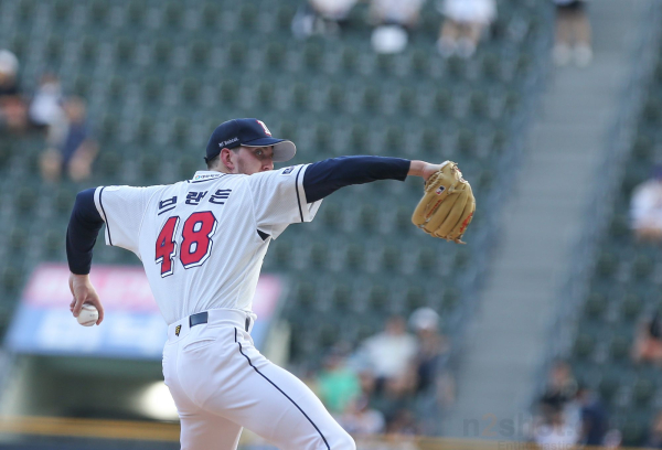 5일 잠실 KT 위즈전에서 투구 중인 두산 베어스 브랜든 와델의 모습. 사진=두산 베어스 제공