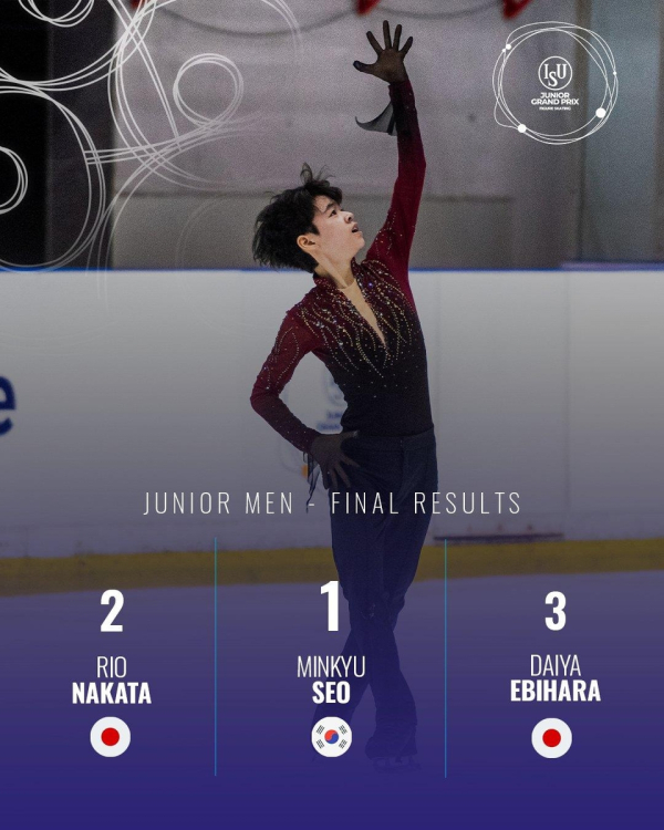 한국 남자 싱글 선수가 주니어 그랑프리에서 우승한 건 역대 3번째다. 이준형이 2014년 8월 주니어 그랑프리 1차 대회에서 한국 남자 선수 최초로 ISU 공인 국제대회에서 정상에 올랐고, 2016년 차준환이 그 뒤를 이었다. 서민규는 차준환(고려대)의 뒤를 이을 피겨스케이팅 남자 싱글 차세대 주자로 떠올랐다. 사진=ISU 소셜미디어 캡처