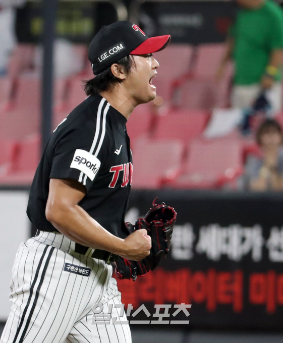 2023 KBO리그 LG 트윈스와 KT 위즈의 경기가 5일 오후 수원 kt위즈파크에서열렸다. LG 마무리 고우석이 9회 황재균을 삼진아웃으로 잡고 5-4로 승리한 뒤 포효하고 있다. 수원=정시종 기자 capa@edaily.co.kr /2023.09.05.