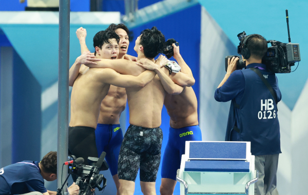 한국 대표팀은 지난해 부다페스트 세계선수권 남자 게영 800m 결선에서 한국 신기록(7분06초93)을 세우며 세계 6위에 올라섰다. 지난달 7월 일본 후쿠오카에서 열린 세계선수권에서도 7분04초07로 6위에 올랐다.