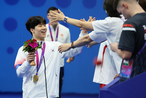 황선우와 이호준은 27일 남자 자유형 200m에서 금메달에 도전한다. 한국 수영 사상 처음으로 AG 4관왕을 노리는 김우민은 26일 자유형 1500m, 28일 자유형 800m, 29일 자유형 400m까지 금빛 역영에 나선다. 김우민은 "첫 스타트가 좋다. 남은 경기도 부담 없이 할 수 있다"며 "자신감도 생겼다"고 했다.