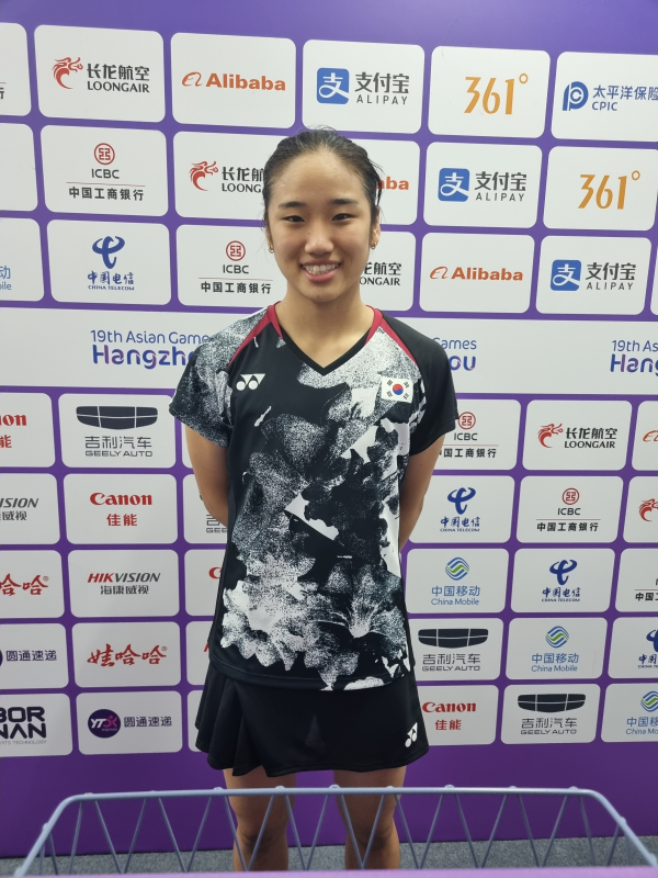 16강전을 통과한 선수들은 들뜨지 않았다. 배드민턴 대표팀 최고 스타로 떠오른 안세영은 단체전에서도 만났던 몰디브의 압둘 라자크 파티마스 나바하를 게임 스코어 2-0(21-4, 21-6)으로 제압했다. 승리까지 단 21분만 걸리는 압승이었다. 4일 중국 항저우 빈장체육관에서 열린 항저우 아시안게임 배드민턴 여자 단식 16강 한국과 몰디브의 경기. 한국 안세영이 몰디브 압둘 라자크 파티마스 나바하를 상대하고 있다. 사진=연합뉴스 안세영은 "단체전을 마치면서 경기를 여유롭게 풀어가는 것 같다. (승리한 덕분에) 내일도 경기가 있어 더 행복하다"고 승리 소감을 전했다. 그는 "단체전은 단체전이고, 개인전은 개인전대로 의미가 깊다"며 "금메달이 생기니 '개인전도 할 수 있지 않을까'라는 욕심은 더 생긴다. 하지만 난 욕심 내면 잘 안 되더라. 매일 말하지만, 그저 하루하루 최선을 다하겠다"고 다짐했다. 4일 중국 항저우 빈장체육관에서 열린 항저우 아시안게임 배드민턴 혼합 복식 16강 한국과 태국의 경기. 한국 서승재-채유정이 태국 데차폴 푸아바라누크로-삽시리 타에랏타나차를 상대하고 있다. 사진=연합뉴스 이번 AG에서 유일하게 자카르타-팔렘방 대회와 같은 조를 짜 온 혼합복식 서승재-채유정은 단단한 팀워크를 자랑했다. 서승재-채유정은 16강에서 태국의 데차폴 푸아바라누크로-삽시리 타에랏타나차(세계 5위) 조를 만났으나 2-0(21-13, 21-11)로 가볍게 승리했다.