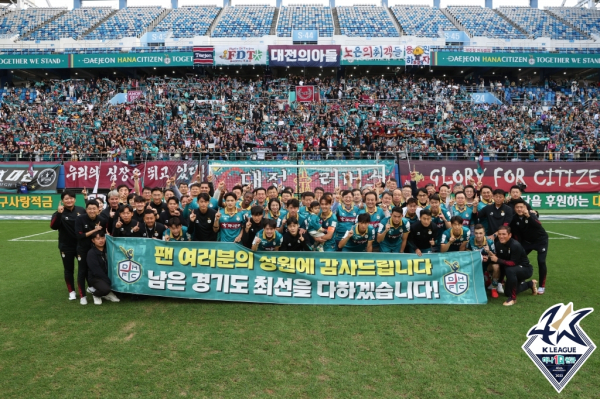 대전월드컵경기장에선 ‘승격팀’ 대전하나시티즌이 제주 유나이티드를 1-0으로 꺾었다. 전반 41분 김민덕이 오른쪽 측면에서 멋진 드리블 돌파 후 오른발 아웃프런트 슈팅을 시도했다. 공은 김오규를 맞고 굴절돼 제주의 골망을 흔들었다. 제주는 후반전 16분 김승섭의 동점 골이 나왔으나, 유리 조나탄의 오프사이드가 나오며 득점이 취소됐다. 대전은 마지막까지 리드를 지켰다. 한편 이날 결과로 리그 8위(11승12무10패·승점 45)에 오른 대전은 10위 수원FC(8승7무18패·승점31)과의 격차가 14로 늘었다. 남은 5경기에서 승점 1만 획득한다면 사실상 잔류가 유력하다.