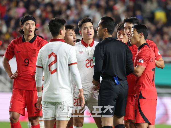 퇴장 판정이 나온 이후 베트남 선수들의 강력한 항의보다 오히려 주장 손흥민 등 한국 선수들이 한참 동안 주심과 대화를 나눴던 것도 같은 맥락이었다. 상대의 퇴장으로 수적 우위까지 점하는 건 한국 대표팀도 원치 않은 일이었기 때문이다. 결과적으로 레드카드를 꺼낸 판정은 번복되지 않았다. 비엣 안은 그대로 경기장을 빠져나갔다. 한국이 4-0으로 크게 앞선 상황, 남은 30여 분마저 수적 우위까지 점한 채 경기를 치르게 된 장면이었다.