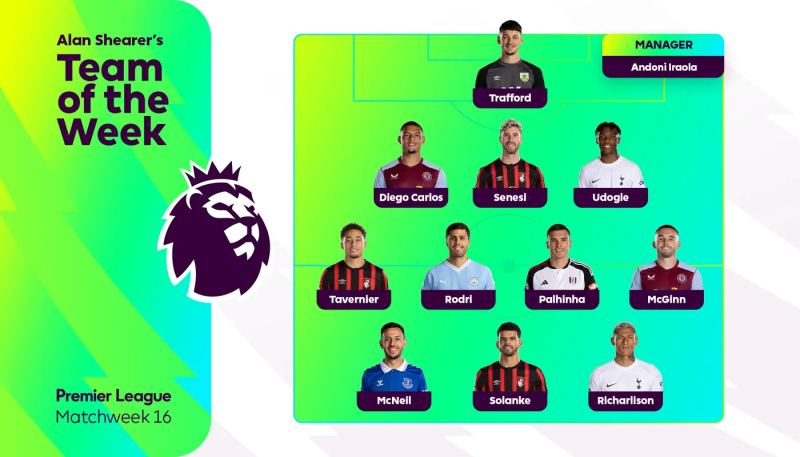 이밖에 EPL 이주의 팀엔 존 맥긴(애스턴 빌란)과 주앙 팔리냐(풀럼) 로드리(맨체스터 시티) 마커스 태버니어(본머스)가 미드필더로, 우도지와 마르코스 세네시(본머스) 디에고 카를로스(애스턴 빌라)가 수비수로 각각 이름을 올렸다. 골키퍼는 제임스 트래포드(번리), 감독은 안토니 이라올라 본머스 감독이 선정됐다.