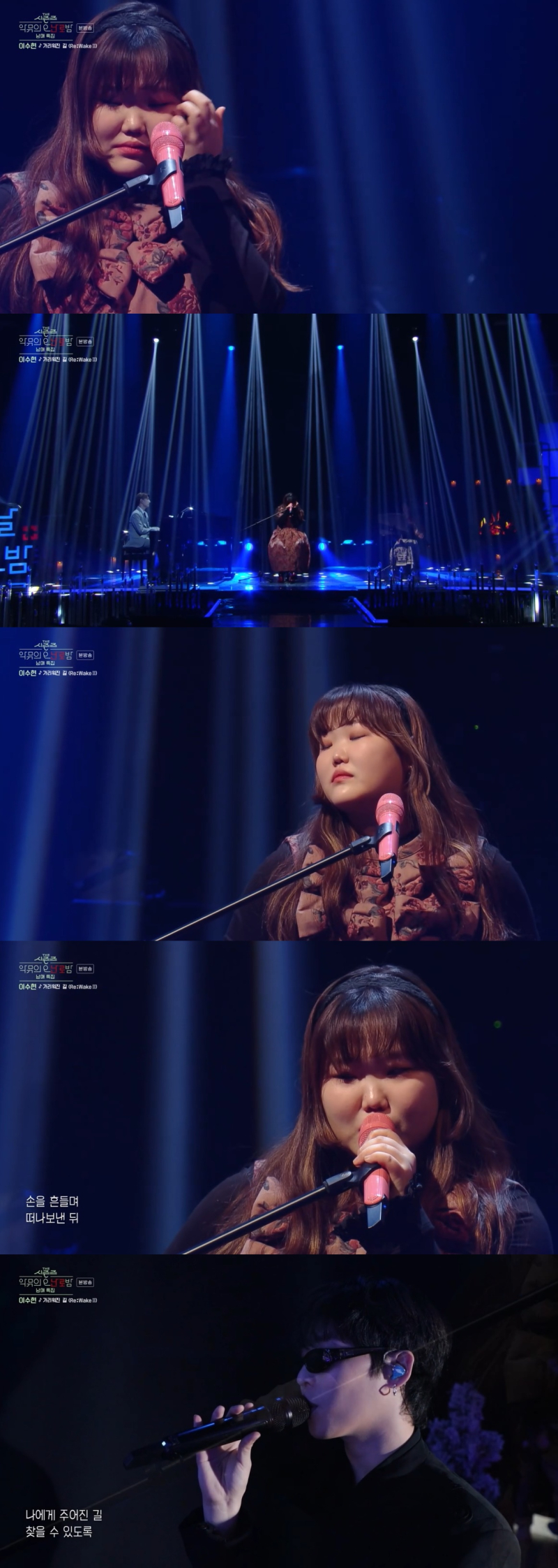 1절을 마친 이수현은 2절의 전주 부분부터 눈물을 글썽이기 시작했다. “이리로 가나 저리로 갈까”라는 가사를 마친 후 결국 노래를 이어가지 못한 이수현은 몇 분 정도 감정을 추슬러야 했다. 이수현은 “외로움만이 나를 감쌀 때”라는 가사에서 다시 멈칫하자 오빠인 이찬혁은 “그대여 힘이 돼주오” 가사를 함께 따라부르며 훈훈한 모습을 연출했다. 다시 진정한 이수현은 끝까지 노래를 마쳐 관객들의 박수를 받았다.