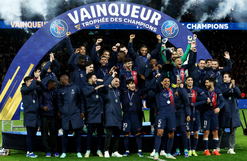 파리 생제르맹 이강인의 프랑스 이적 후 첫 우승을 축하한 프랑스 리그1 사무국. 사진=리그1 이강인(아랫줄 왼쪽 세 번째) 등 파리 생제르맹(PSG) 선수들이 4일 2023 트로페 데 샹피옹 정상에 오른 뒤 우승 세리머니를 하고 있다. AFP=연합뉴스