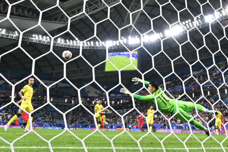 말레이시아 골키퍼가 16일 요르단과의 AFC 아시안컵 조별리그 1차전에서 상대 슈팅 선방을 시도하고 있다. AFP=연합뉴스 이번 아시안컵은 6개 조 1, 2위 팀이 16강에 직행하고, 성적이 좋은 3위 4개팀도 16강으로 향한다. 말레이시아 입장에서는 3위를 차지해 토너먼트에 오르는 것이 현실적인 꿈이었다. 하지만 요르단에 힘없이 무너지면서 조별리그 탈락이 가까워졌다.
