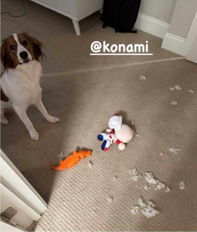 오타니 쇼헤이가 개인 SNS를 통해 인형을 망가뜨린 애견 데코핑의 모습을 올렸다. 사진=오타니 쇼헤이 SNS 캡처 앰버서더 첫 날부터 '사고'를 친 건데, 정작 코나미 사는 활짝 미소를 지었다. 데코핑이 사고를 쳐 준 덕분에 오타니가 코나미의 앰버서더가 됐고, 마스코트까지도 전국민에 홍보할 수 있어서다.