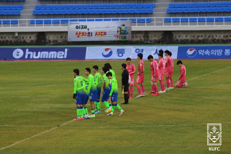 용인대(분홍)와 상지대가 승부차기를 대기하는 모습. 사진=대학축구연맹 이날 비바람이 치는 궂은 날씨에도 박준홍 감독의 열정은 뜨거웠다. 특히 연장전에 관중석까지 지시 사항이 들릴 만큼 쩌렁쩌렁 울린 것은 팬들의 이목을 사로잡았다. 박 감독은 “내가 사실은 그라운드에서 선수들에게 다그치면서 이야기한다. 교체로 들어간 선수들이 조금 못 뛰어준 것에 대해 좀 더 나무랐다. 선수들이 이해해 주리라 믿는다”고 전했다.